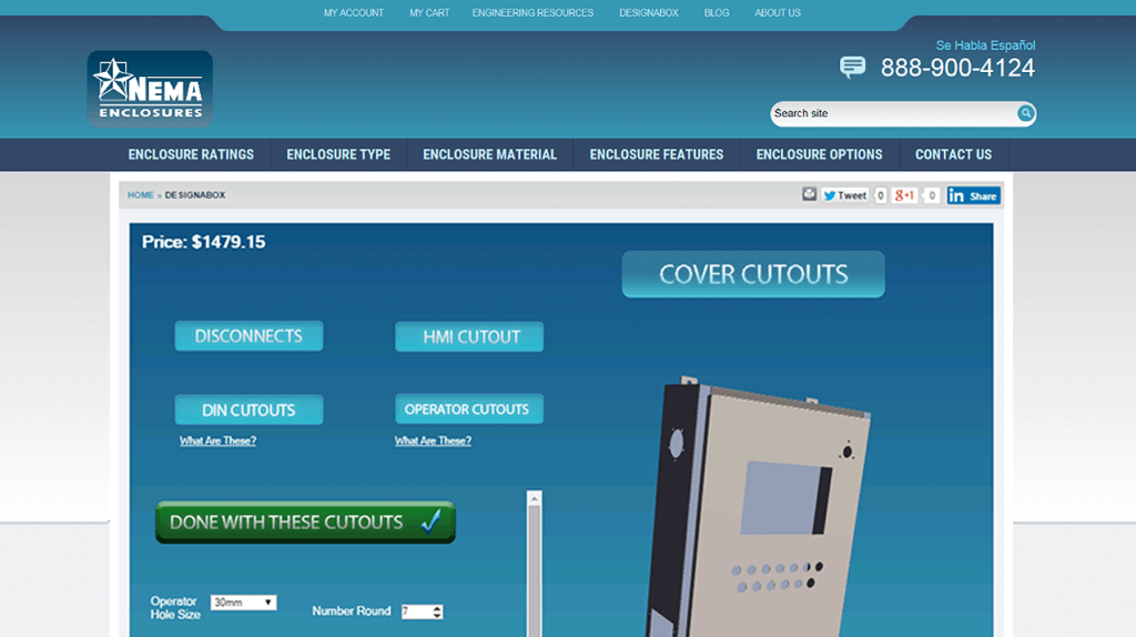DESIGNABOX electrical enclosure customization technology screen shot on nemaenclosures.com