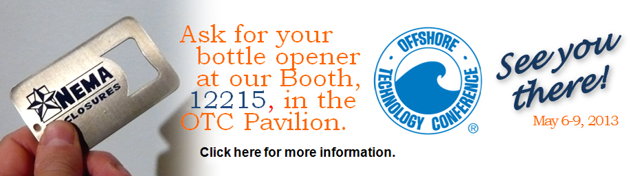 Enclosures expert at our OTC booth 12215 in the OTC Pavilion in Houston from May 6-9, 2013 in Houston, Texas. While your there ask one of our enclosure specialists for your own exclusive Nema Enclosures bottle opener.