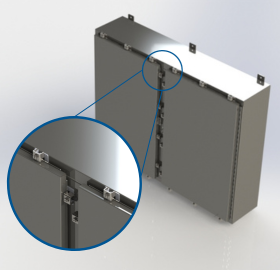 - Customize your single-door continuous hinge with clamp electrical enclosure to your exact specifications with custom options such as; cutouts, insulation, hinges, latches, or locks